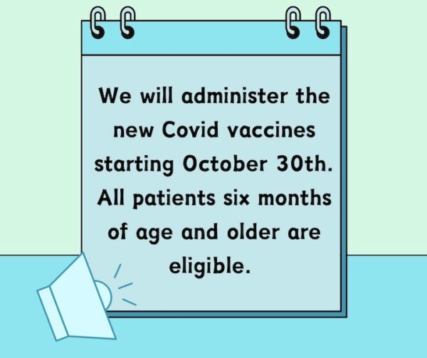 Call to schedule a covid vaccine appointment. We will start administering updated 2025-2026 covid vaccines on October 30th.